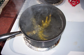 Hey come over for supper! While we'll not be having this exact dish it ends up as the basis for many of our meals & I ran out, so I thought I'd put my recipe up. That way you can decide to accept the invitation. Or not, I know some don't like to know where their food comes from. I present: chicken stock.